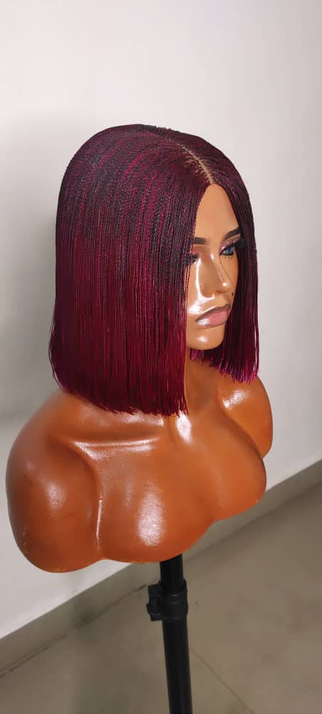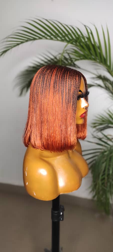 This striking micro bob wig, displayed elegantly on a mannequin, offers a bold and vibrant look for those seeking to make a statement. Crafted from high-quality synthetic fibers, it mimics the natural sheen and texture of real hair, ensuring a realistic appearance. The adjustable cap provides a comfortable fit, making it suitable for various head sizes. Perfect for costume parties, theatrical performances, or simply to enhance your everyday style, this red wig is a versatile addition to any wardrobe.
